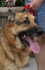 We aren't certain of Lobo's age - over 7 but one thing that we are certain about...Lobo absolutely adores children. His foster mom reports that he followed her four year old granddaughter everywhere - one day, she couldn't find him and upon checking her granddaughter's room, found her reading a story to Lobo, who patiently listened to every word! This guy is amazing - he is a "steady Eddie" with such an agreeable personality. His foster mom has been taking care of his ear infection and with good food and a warm bed, he is blossoming. Lobo is perfect!