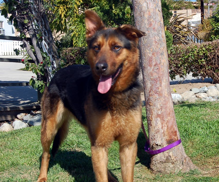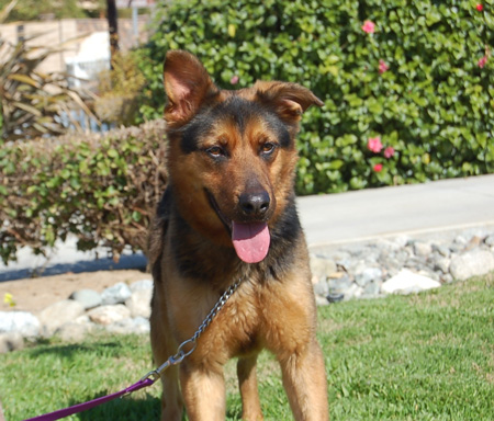 Lola is currently living with her foster parents, 2 large male German Shepherds and 2 male mixed breed cats. She gets along great with her 2 foster GSD brothers, but we're not so sure about the meow-meows! On our daily walks, she tries to go after the bunnies running around in our local parks. Just as with us on her first day, she is a little shy with strangers but quickly turns into a love bug in minutes, begging for treats and a good belly scratching!