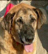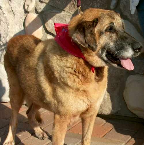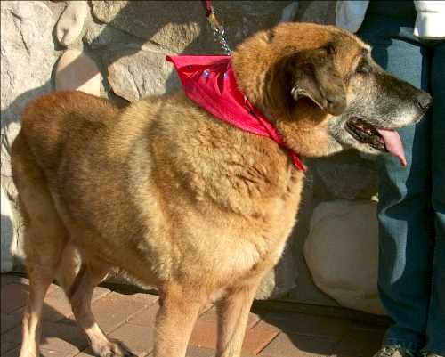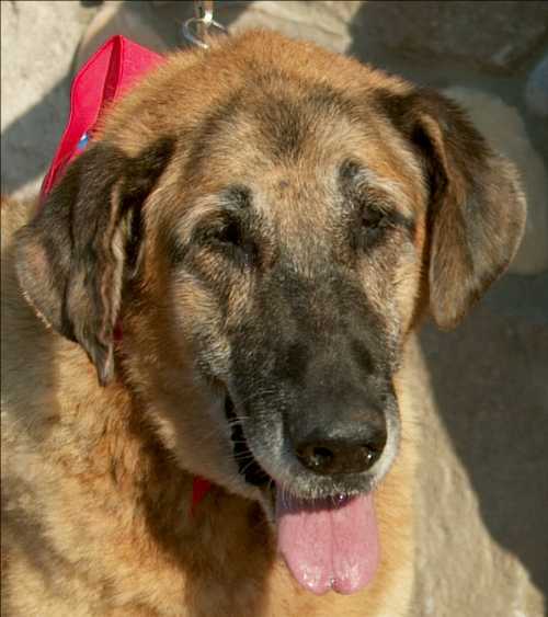 Found tied to a tree in an abandoned backyard, Loretta had been without food or water for a long time. When we finally got her out of the shelter, she smelled worse than ANY dog we'd ever rescued. Our kind boarding operator bathed her immediately - after FIVE baths, she was still dirty. The sixth one did the trick - with good nutrition, her coat is softening up and is the prettiest tan. Loretta suffers from arthritis but her mobility has improved with good food and a constant soft bed. She also has cataracts and is nearly blind.