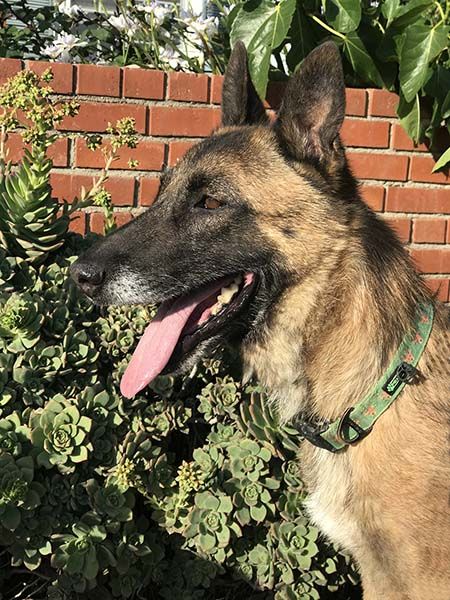 This Malinois/GSD mix is such a great boy, but very timid around people he doesn't know. Once he knows you, he's affectionate and great on a leash. When he doesn't know you, he's skittish, so it'll take some time. When he knows you, he likes to lean against you, lets you pet him, cut his nails, give him a bath, brush him, etc. When he trusts you, he really trusts you. He spends his days playing with lots of other large breed dogs, male and female, and going for walks with volunteers. He's obedience trained and working him is a great way to build trust.
