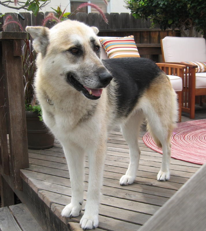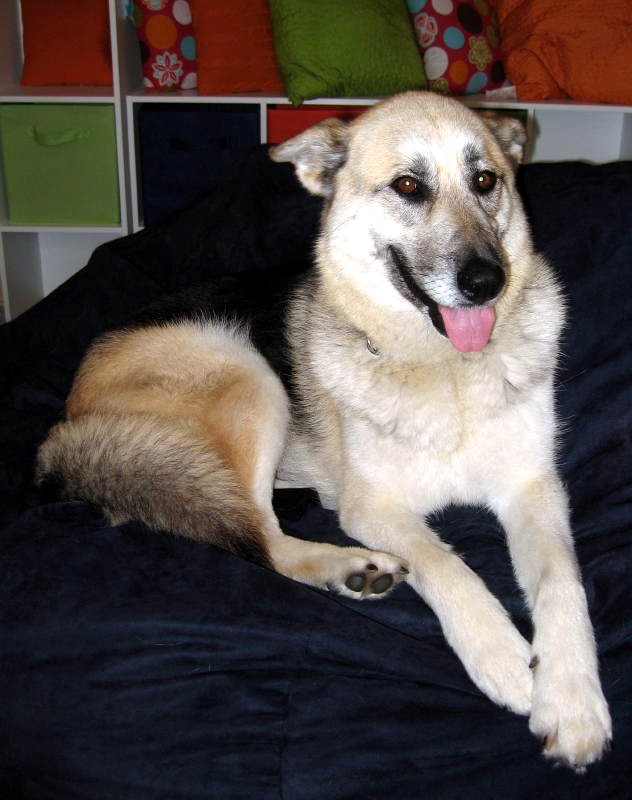 Pups don't come any more gentle than Miss Maggie. If you're looking for a guard dog, this mellow girl is not for you! This blonde and black beauty has been living with her foster family for 2 weeks and they haven't even heard her bark yet! The family has two small children and Maggie loves snuggling with them. She does a good job keeping her eye on them, too. If they yell, even in play, she needs to go check it out to make sure all is well. She loves going for walks and she's super easy on the leash ... even when a 5-year old is walking her! She gets along well with other dogs, large and small, and cats, too. Her foster family has 3 cats and she allows them to rule the roost!! Maggie's not a big player - she doesn't really play. She's not a ball chaser, toy chewer or even a tug-of-war player. She's just a lover!