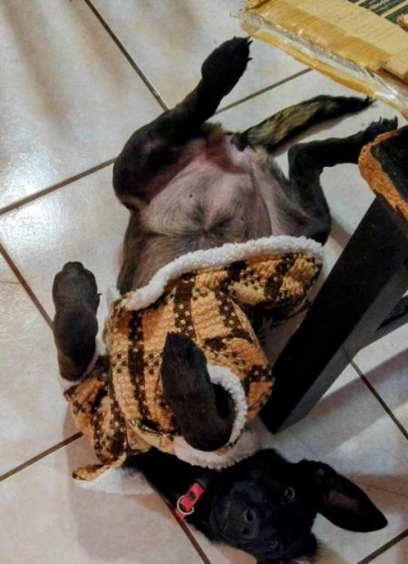 She is house trained and will let you know when she needs to go out. Mamba is very happy to lie down next to her person and sleep while they work and she is also always ready for a great game with toys.