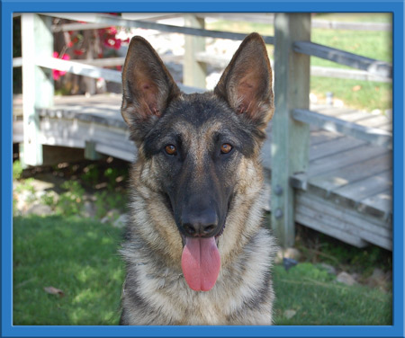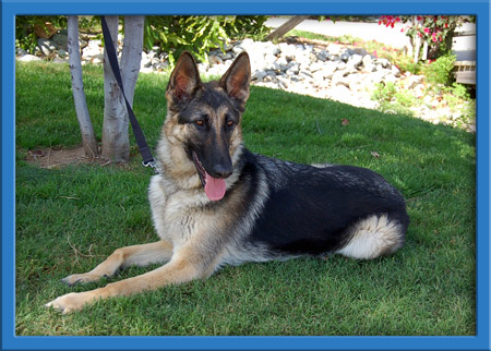 Maya is very tall for a female, elegant and light on her feet. She sits, she downs and she shakes so her previous family did spend time working with her. Our transporter brought her twin girls along to help in this rescue effort and Maya was gentle & kind with all.