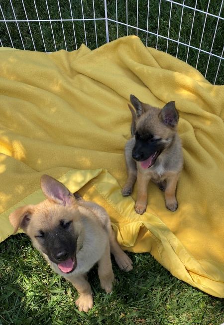 Meadow is adorable, confident, independent and can amuse herself very easily. We recommend that she go into a home with another confident dog and/or to a home with Malinois experience as her independence could result in an adult dog who does not get along with other dogs if she is not properly trained which could cause problems in the future.