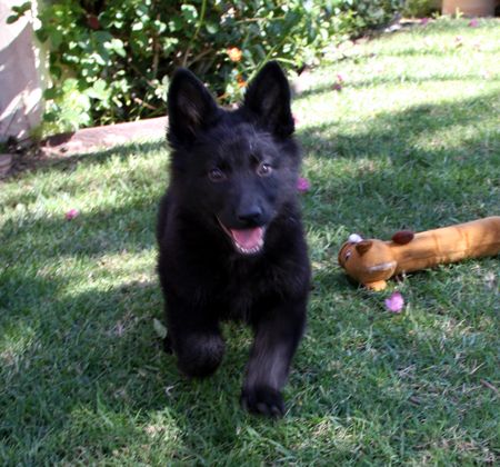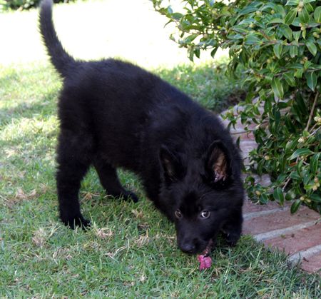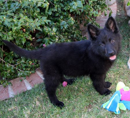 Meet little Meadow, a spunky black German Shepherd puppy. Meadow loves people and is a sweet little girl. She is active and curious about the world around her. She loves to explore and play with her toys. While she is very playful, she also will curl up at your feet and hang out. Meadow likes other dogs and would do well in a home with another dog or a family who has dog friends to socialize her with.