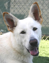 Meika was found running free in San Diego, and clearly she’s been on her own for a few months. Her pads were a bit worn, her immune system was shot, her coat was in poor shape, the tip of her ears are of a golden brown which indicates being in the sun and no shelter . . . . . and yet, she is the Happiest Girl on Earth. Meika loves people of all sizes; all she wants to do is give away a ton of kisses. She also has this habit of putting her head in between your knees, not because she’s afraid but because it feels good!