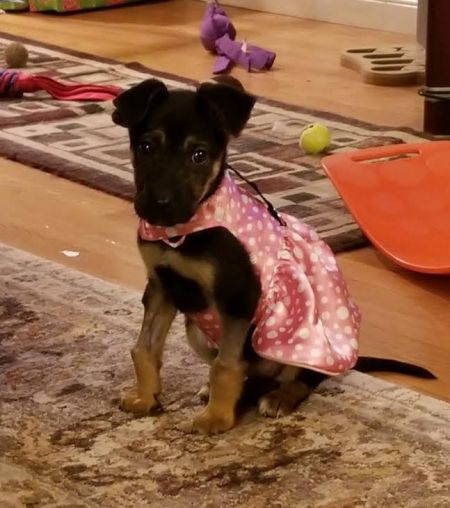Little Merry came to us with Parvo. She spent the first two months of her life in a hospital. The vets and techs took wonderful care of her and she went into a foster home just before Christmas. Her foster parents adore her and are spoiling her. Merry no longer has signs of Parvo but she could possibly shed the virus for a little while longer so she can not go to a home that has any puppy or dog that is not fully vaccinated. She could go to a home with an adult dog(s) that are current on their vaccinations. Merry is small, sweet, and loves to be cuddled. She lives with other dogs and is great with them. She is super smart and is crate trained and mostly potty trained. If you met Merry, you would never believe that this little girl was so ill at one time.