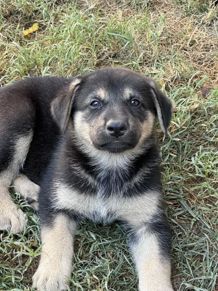 Rain is a three year old GSD who probably lived somewhere where she was not appreciated or taken care of. Amazingly, her puppies were born healthy but Rain very thin with a dull coat. We have no idea who or what the dad was.
