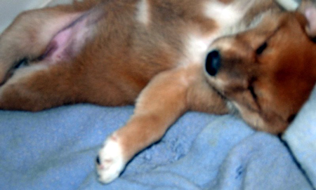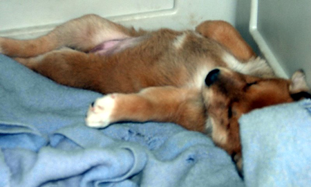 The neighbor who had been trying to feed and befriend the mom and dad, noticed that mom had build a nest under a storage container on the property and then the next day there were 8 little babies born. He asked for help from animal control again and mom proved to be evasive. This kind man continued to feed and help mom, he worked with animal control to trap mom---as he knew that living in a field was no place for her and now she had 8 babies that were soon going to be running the streets as well. Mom was trapped and brought to the county animal shelter with her babies. Paul, the kind neighbor, visited them at the shelter every day--bringing treats and food for mom. He was devastated when he found out that mom and babies were soon going to be euthanized, as there was no space for a family of nine at the county shelter.