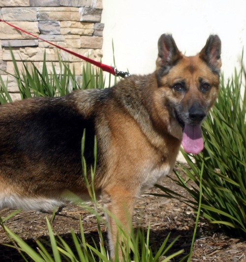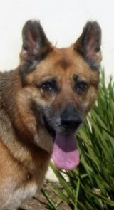 Right now Missy is in a home with other German Shepherds. She'd probably do best as an only dog or with a submissive male as a companion. We think that Missy is around 9 years old.