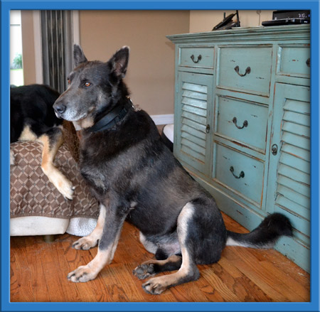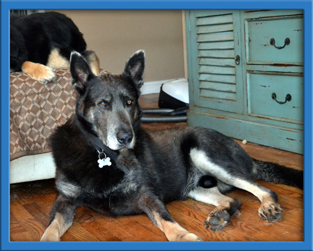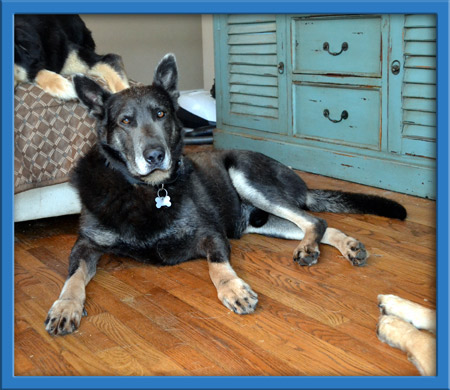 Mister is a blue shepherd with hazel eyes. He is stunning in person. Mister has probably always been an outdoor dog and is most comfortable outside - we rarely have dogs who make the choice to be outside if they can be indoors but Mister is one of those dogs. He loves to chase insects, wade in the shallow end of the pool and just hang out quietly.
