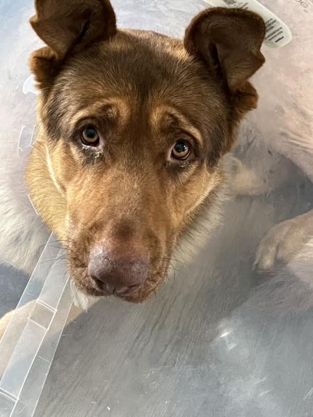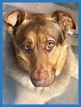 Mitch is a large "liver colored" GSD approximately 1-2 years old. A liver shepherd is basically a red-headed shepherd that does not have black pigment because of a recessive gene.