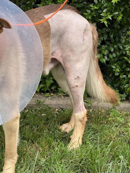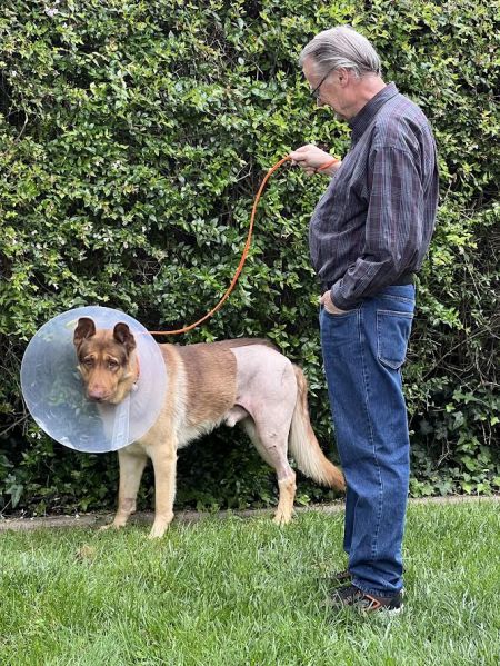 Mitch was hit by a car and underwent surgery for a broken left hip. He recuperated in a foster home and now is totally healed. Mitch was also "cryptorchid" - one of his testes did not drop, and he had a second surgery including getting his double dew claws removed from his back legs. Mitch also had a terrible skin infection that was also treated by Coastal's vets.