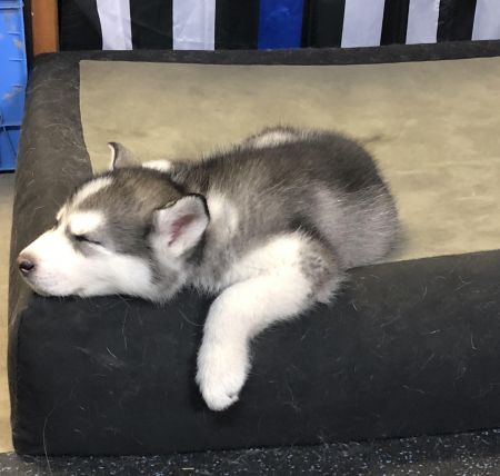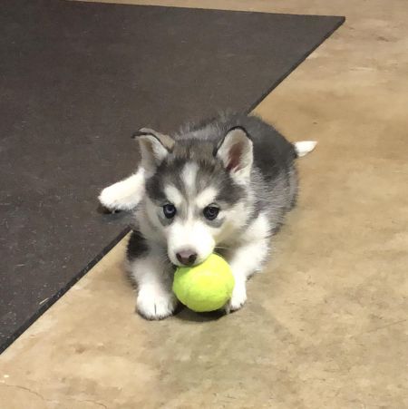 She absolutely MUST have another dog that can match her level and play with her. She sleeps in a crate all night and is working on being housebroken. She gets along great with other dogs but is definitely in the puppy chewing phase. Please do research on Huskies and understand the unique characteristics of this breed before applying for her.
