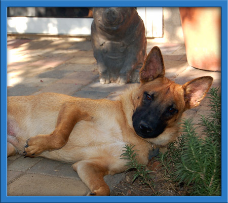Little Molly is a sweet, gentle thumbelina who likes to be carried around and loves to give kisses. Her tail must have been broken before we rescued her so it has a bit of an angle to it but doesn't stop her from wagging on a regular basis. Molly won't weigh more than 30 lbs (we guess) at maturity so she is the perfect "little" dog. She has a very sweet personality and gets along wonderfully with other dogs. She can hold her own against dogs much, much bigger than herself!