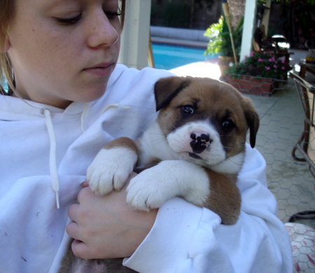 The neighbor who had been trying to feed and befriend the mom and dad, noticed that mom had build a nest under a storage container on the property and then the next day there were 8 little babies born. He asked for help from animal control again and mom proved to be evasive. This kind man continued to feed and help mom, he worked with animal control to trap mom---as he knew that living in a field was no place for her and now she had 8 babies that were soon going to be running the streets as well. Mom was trapped and brought to the county animal shelter with her babies. Paul, the kind neighbor, visited them at the shelter every day--bringing treats and food for mom. He was devastated when he found out that mom and babies were soon going to be euthanized, as there was no space for a family of nine at the county shelter.