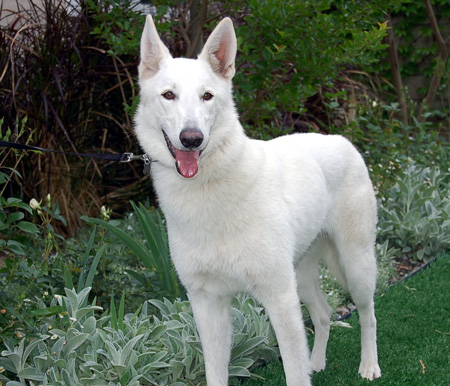 Mya is a very affectionate young lady who does well with other dogs. In her previous life, she was an outdoor only dog. She walks well on a leash and loves to go for long hikes. She is a tall gal who is working on bulking up her frame - Mya is a smidge over two.