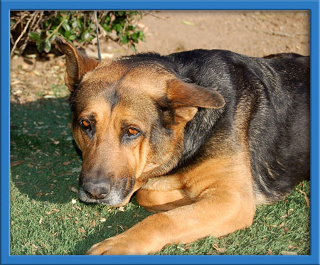 Nana looks morose in her photos but she is anything but. She is truly a gentle soul with people and good with other dogs but like any good mom, she doesn't take much lip from anyone. She lives relatively harmonioulsy in a house filled with other dogs, some alpha, some not, most are older but a handful of pups sprinkled in. She has taken to the "dog" couch, relaxing with her buddy Deuce in quiet harmony.