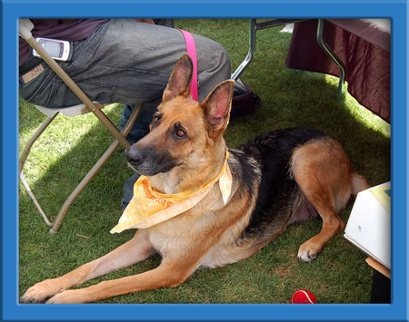 She lives in a multi dog home and gets along with the 7lb Maltese as well as her Shepherd foster siblings. She also has 2 cats as roommates and doesn't even bat an eyelid as they stroll past or roll around lazily in front of her.