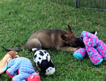 Meet the Naughty 9! Our 2015 N litter was born to mama Lyssa 10 days after she was pulled from a high kill shelter. Her 6 boys and 3 girls have grown up in one of our foster homes and are now ready to find homes of their own. Like their mama, they are very friendly and stable puppies. They have wonderful temperaments and should be easy to train. They love to play with toys and are well socialized with people and other dogs. These adorable pups will make wonderful additions to their new families.