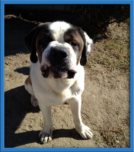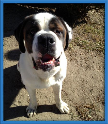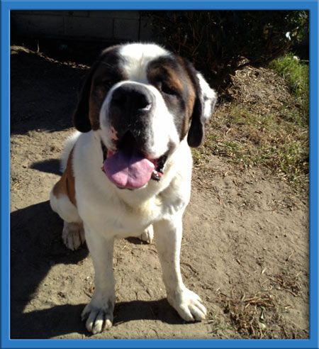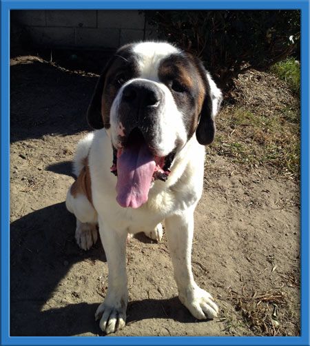 Neal is a big boy! He’s a short coated pure bred St. Bernard. He is a playful goofball who does great with female dogs and would prefer submissive males. His best bud is a German Shepherd Dog named Willow who is known to hang on to him and get him roused up to play chase. Neal knows how to sit and laydown on command. His motto is WILL WORK FOR FOOD! He’s a leaner and enjoys being right by your side. He needs a gentle but firm person who has St. Bernard or large dog experience.