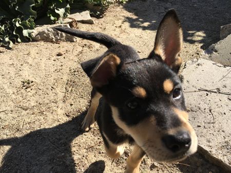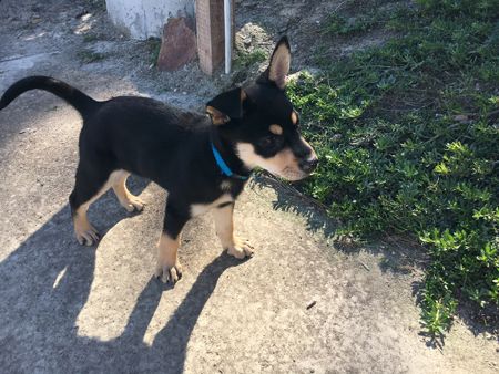 Our "N litter" of puppies - Nico, Noah, Nina, and Noel - are quite a unique mix of breeds. A DNA test was done and the results were that they are predominantly Australian Shepherd with some Bulldog and Pug thrown in for fun. And these little guys are fun! We don't think they will get too big and will most likely be medium sized dogs when they are fully grown. They are very agile and active. They are friendly and sweet with people thanks to their foster mom's attention and love.