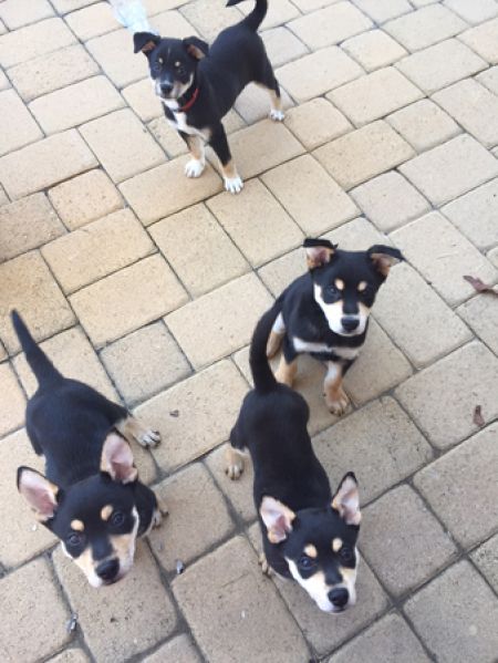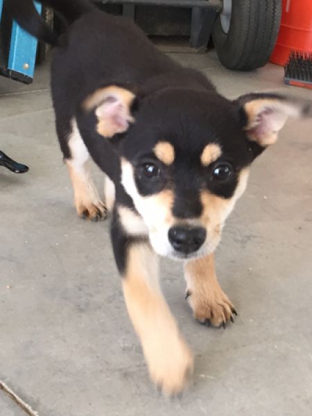Our "N litter" of puppies - Nico, Noah, Nina, and Noel - are quite a unique mix of breeds. A DNA test was done and the results were that they are predominantly Australian Shepherd with some Bulldog and Pug thrown in for fun. And these little guys are fun! We don't think they will get too big and will most likely be medium sized dogs when they are fully grown. They are very agile and active. They are friendly and sweet with people thanks to their foster mom's attention and love.