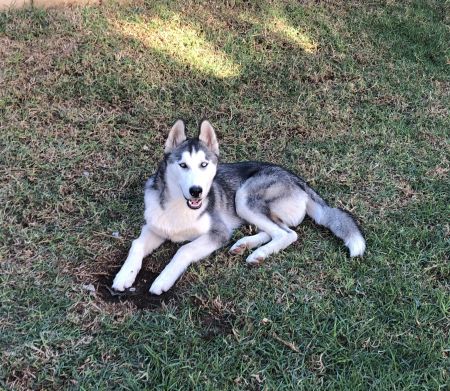 Meet Nitro. He’s a Siberian Husky who was originally adopted out as a puppy but now thanks to s divorce he’s back with us. He’s about eight months old and full of young husky energy. He’s housebroken and crate trained. He walks on a leash but would prefer to run instead. He gets along fine with other dogs as long as they understand that huskies like to play VERY rough. He’s also great with people but may be too energetic for small children. Nitro would do best with another dog that can match his energy level. He is NOT a good dog for an inexperienced owner. If you’re interested in Nitro please make sure you do your research and understand the uniqueness of being owned by a Siberian.