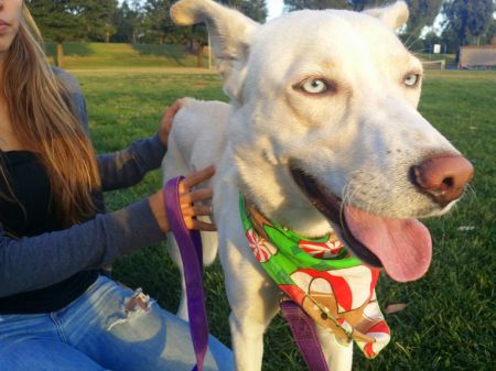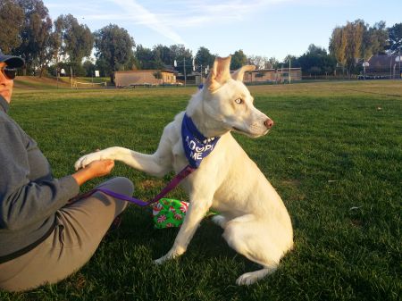 The rescue seems to think I am a Husky/Shepherd mix but I am just a big lap dog. Well not too big, because despite my breed, I am petite, and weigh approximately 55 Lbs. I walk well on a leash. I'm not much of a puller but I get scared with loud noises or trucks. I like playing fetch and my favorite toy is a ball. I am housebroken and I am medium to low energy. I love affection and I am learning my basic commands.