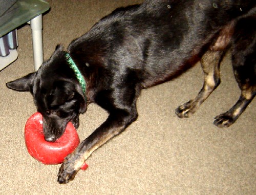 Obie likes everyone - hes cool with other dogs and very friendly with people. He seems to have a pretty low energy level. Currently living with an alpha shepherd, he has no problems playing second fiddle.