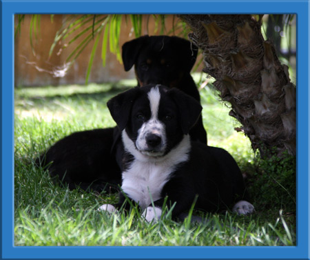 Onyx was rescued from a high kill shelter just days before she gave birth to her 10 puppies on April 26th. The puppies are absolutely adorable and seem to have inherited their moms wonderful happy temperament. Like Onyx, her puppies are very friendly, outgoing and confident. Very social, their tails wag nonstop when they see you!