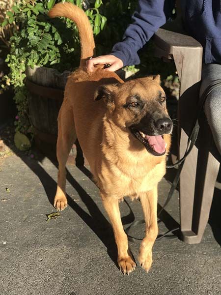 Olivia's just a young pup who was scared of the world when she came to us, but warmed up to everyone she now knows: she's a cuddler, affectionate, very sweet once she trusts you, and gets along with other dogs.