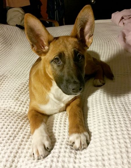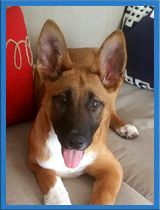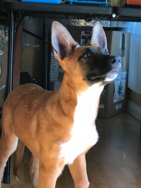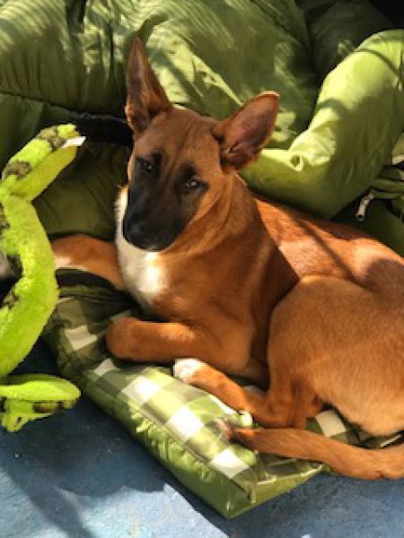 Meet Olivia Rose! This little girl is such a sweetheart. She was rescued from a homeless encampment in the LA Riverbed. She is now living with a foster in a second story apartment. She is approximately 4 months old, crate trained and is in the process of being house broken. Olivia Rose has not met a person or dog that she does not like. She appears to be a mix of Belgian Malinois and German Shepherd with a little something extra possibly thrown in that gives her little white feet. She loves her snake toy and sitting in the sun on the balcony.