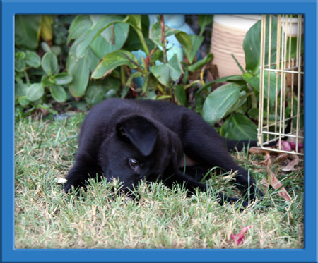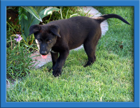Onyx was rescued from a high kill shelter just days before she gave birth to her 10 puppies on April 26th. The puppies are absolutely adorable and seem to have inherited their moms wonderful happy temperament. Like Onyx, her puppies are very friendly, outgoing and confident. Very social, their tails wag nonstop when they see you!