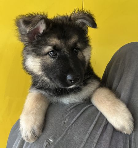 The puppies are 81% German Shepherd and 100% "Good Dog" (according to the Wisdom Panel). The other predominate breed is Siberian Husky.