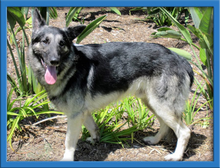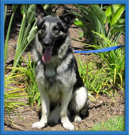 Patton found himself lost and bewildered after the 4th of July holiday. He wandered onto the secure grounds of a hospital and searched for his family he was lost from. Days turned into weeks and the staff began noticing Patton had settled in and was living on the grounds of the hospital. The very caring officers that worked here began feeding Patton and eventually befriended him. He became a constant companion for one officer and would join him as they walked the grounds of the hospital. Staff at the hospital reached out to a local rescuer who contacted Coastal. We just happened to be in the area today and offered to come by and see if we could help Patton out. When we got to the hospital, we found a very young, very pretty boy who was clearly lost and confused. Unfortunately, Patton does not have a collar, id or a microchip---so there is no way to know if a family was ever looking for him. Patton is under our care now and we are sure that we can find him a loving home where he will not be left to fend for himself ever again. We believe Patton is about 2 years old. He is a gorgeous silver and black German Shepherd and has a very nice plush coat. He has met a few of the other dogs at the rescue and seems to like other dogs and also seems to love children.