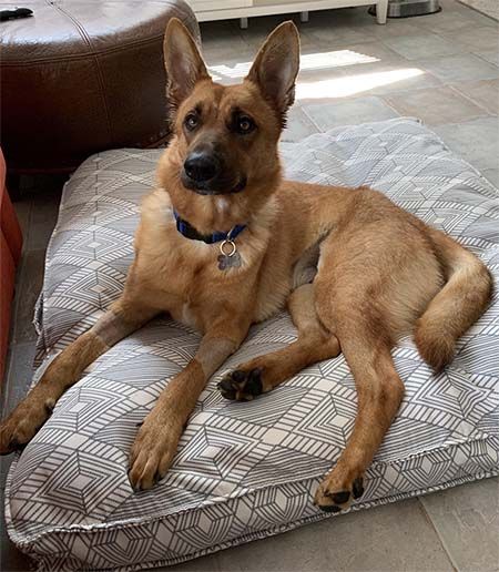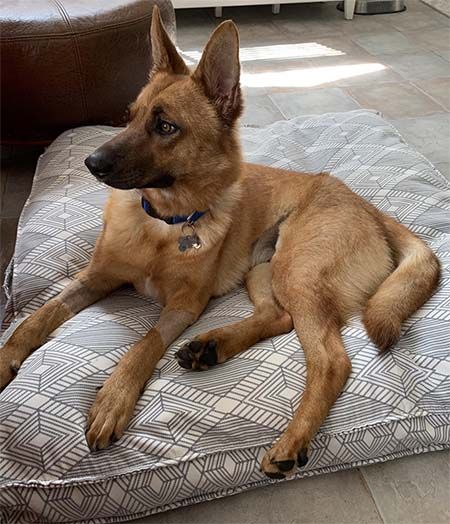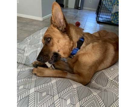 Around 55 pounds, this amber beauty loves people, is now good on a leash, loves to go for walks and hikes, has been fine around large dogs, but has a big prey drive (There is nothing better than hunting squirrels! 😂) and wouldn't do well in a home with small dogs. If you've been looking for a smart and affectionate young GSD who is now healthy as can be, this is your girl.