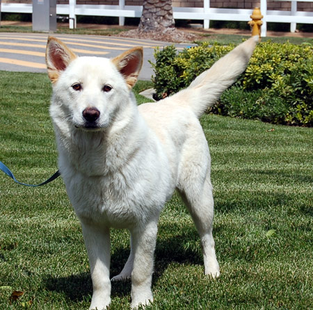 We couldn't say no to Pepsi - she might have some shepherd in her but mostly something smaller. She absolutely lights up when she sees kids. And she does wonderfully with other dogs, large or small - she fits right in with all the teenage boys in her foster home. On Pepsi's first night, she slept quietly in a crate which will help greatly with her house manners.