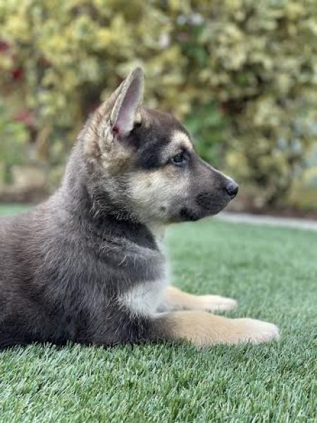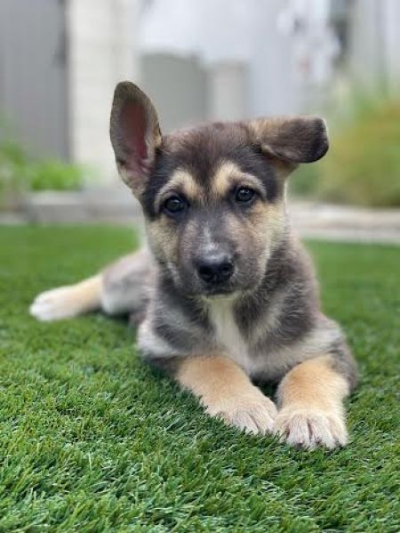Liberty is a German Shepherd and dad was obviously an Australian Shepherd. Most of the seven pups in the litter look either like mom or dad but Phoenix looks a little like both. They have been socialized around children and other dogs. They will be 2 months old on September 10th and will be able to go home with adopters after that.
