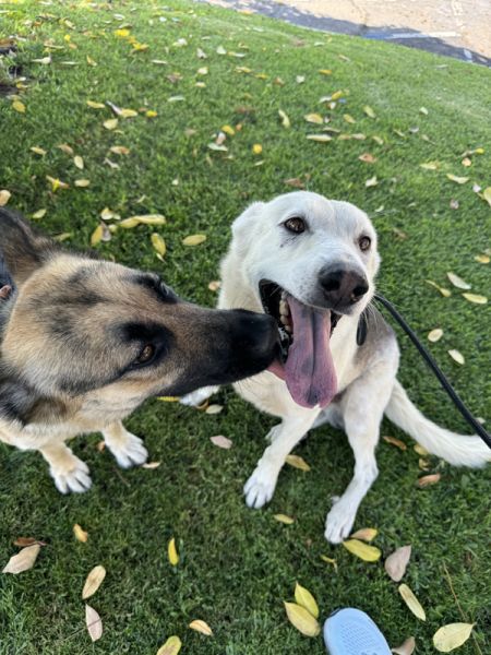 Ms. Poppy is as bright as the California Poppy that she is named after. She is a complete joy! At about 10 months old, we rescued her from the harsh desert along with her younger siblings and mom/dad. We believe Poppy was born in the desert and didn’t know a kind hand until a Good Samaritan began feeding this wayward family. Surprisingly, Poppy seems to carry zero baggage from that experience-she is so full of joy and happy to do anything you ask of her! Going on walks is a favorite- if she sees the leash her tail goes a mile a minute!