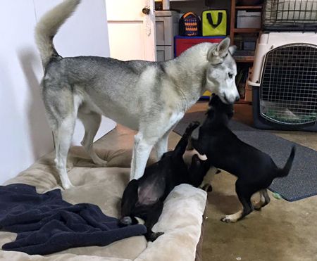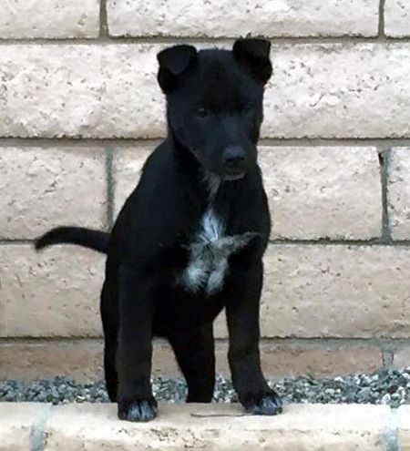 Quartz has short black hair with a white chest and little white feet. She is a mix of Australian Shepherd, German Shepherd and lab. She and her siblings Quincy and Queenie came from Phelan and are approximately 10 weeks old. Quartz is very social with people, including children, and other dogs.