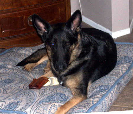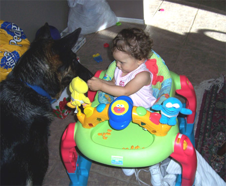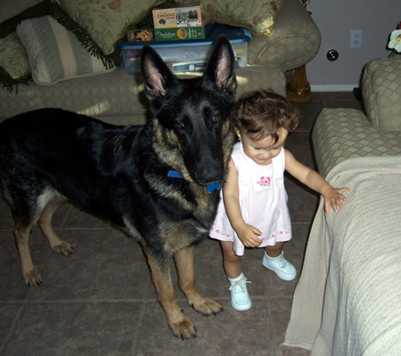 Queenie is 6 years old, housebroken and superb with kids (even toddlers as you can see). She loves to play ball. Queenie has taken the role of patrolling the yard and will alert you if anyone or anything is around the property that does not belong. She is good with other dogs and crate trained and wonderfully mannered!