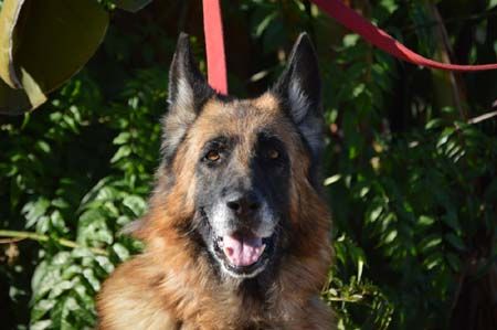 This big boy, just under 100 pounds, was missing half of his hair when he arrived at the shelter. They cared for his flea dermatitis and his silky coat started to grow back. Rambo really enjoys his walks around the neighborhood and could go for miles, flashing his million dollar smile at passersby. Just about 7 years old, he's still got spunk and enjoys playing in the yard with the large female dogs. When you've got it, you've got it!