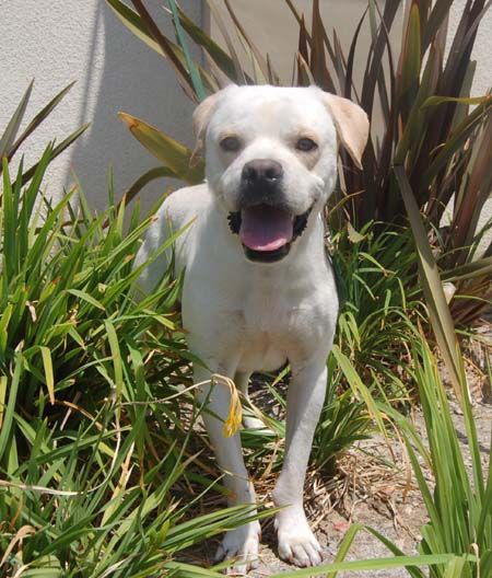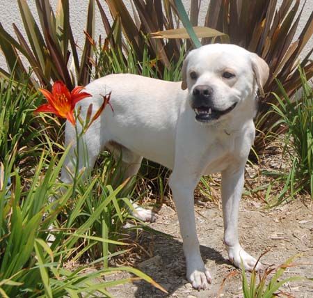 Rambo is a big dog in a little package; he looks to be Boxer mixed with something much smaller, as he's only about 30 pounds. He has the cutest underbite you'll ever see and loves the people around him. Rambo walks well on a leash, takes to new commands quickly and is the perfect size for condo living!
