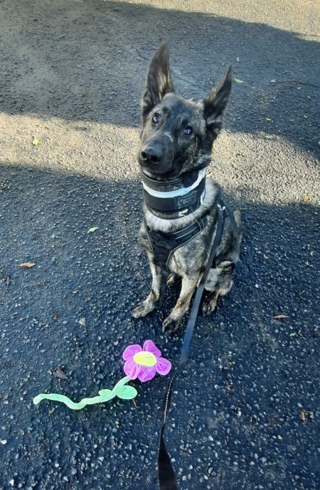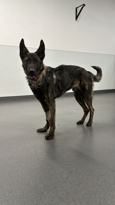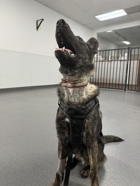 Ranger, quite the dynamo, came to Coastal German Shepherd Rescue after Animal Control found him with an open neck wound. A piece of string had been tied around his neck. As Ranger grew, the string cut into his neck, opening the wound and forcing the skin to grow around the string. After surgery to remove the string, Ranger was on the road to recovery. He doesn’t seem to know he had a rough puppyhood. He has a joy for life that’s unmatched. He’s believed to be a Dutch shepherd because of his high energy and drive to work. He would do best in a home with people who understand a large, working breed dog and can give him outlets for his energy. Ranger strives on structure, rules and boundaries, so his new owner(s) will need to be consistent with him!