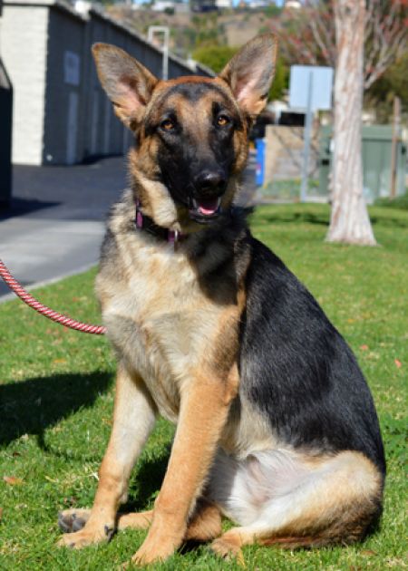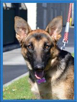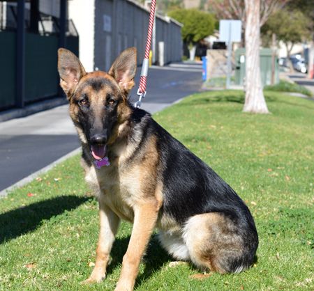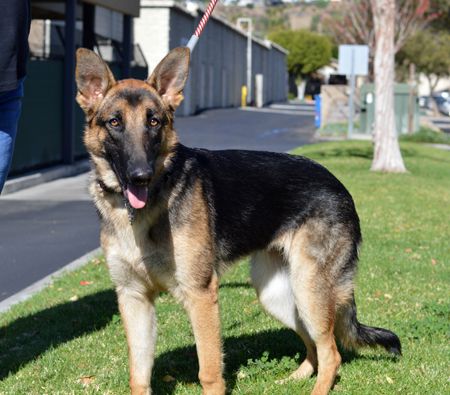 Around 7-9 months old, this beauty is in a foster home with a male GSD and is potty trained. Reagan needs a strong handler and would benefit from group training classes where she can get some socialization with other dogs as well as learning basic commands. She has some separation anxiety and would do well with a family where someone is home most of the time. Like most dogs, she does not like fireworks so no homes around Disneyland.