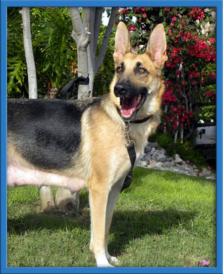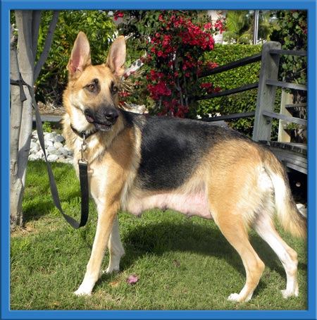 Reba was turned into the city shelter with 6, 3 day old babies. Her owner passed away and his wife couldn't care for this little family. The OC Chapter of Coastal German Shepherd Rescue was notified, as the city shelter is no place for a young family. We whisked her and her babies to a warm and safe foster home. Reba is a young girl herself. She is a happy, well adjusted and like a Shepherd, eager to please. She is crate trained and pretty well housebroken. She rides in a car fabulously. Now that she's done caring for her puppies she is looking for someone to care for her.