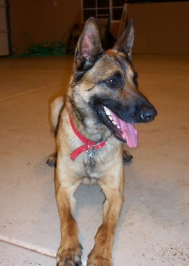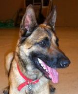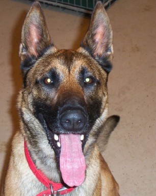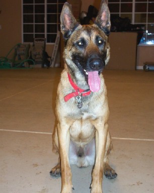 Meet Red! Red is a very happy, male shepherd (perhaps a mix). He is youthful both in action and appearance, estimated to be two years old, very likely younger. Red has a tan/reddish body with a traditional shepherd profile.
