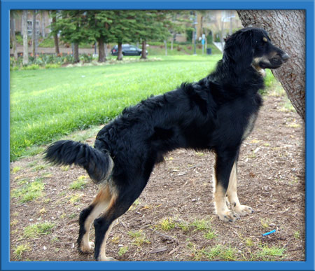 We don't know what Reese is mixed with - Saluki? Afghan hound? He's tall & thin with wavy hair. He has a tremendously happy disposition and at his first play date with a bunch of other dogs, he was a solid rock star.