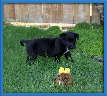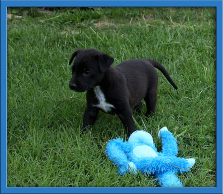 Riley, earless and pregnant, was rescued on her last day at a very impacted city shelter. Thanks to a kind shelter worker who brought her to our attention, we were able to get her out in the nick of time. Fast forward almost a month and "Riley's Rascals" burst on the scene on May 29, all 10 of them. Riley has done a great job raising her 4 boys and 6 girls, they are active, loving babies who love to play especially with their toys. They will be ready for new families the week of July 24th, so without further ado we are officially introducing "the Rascals".